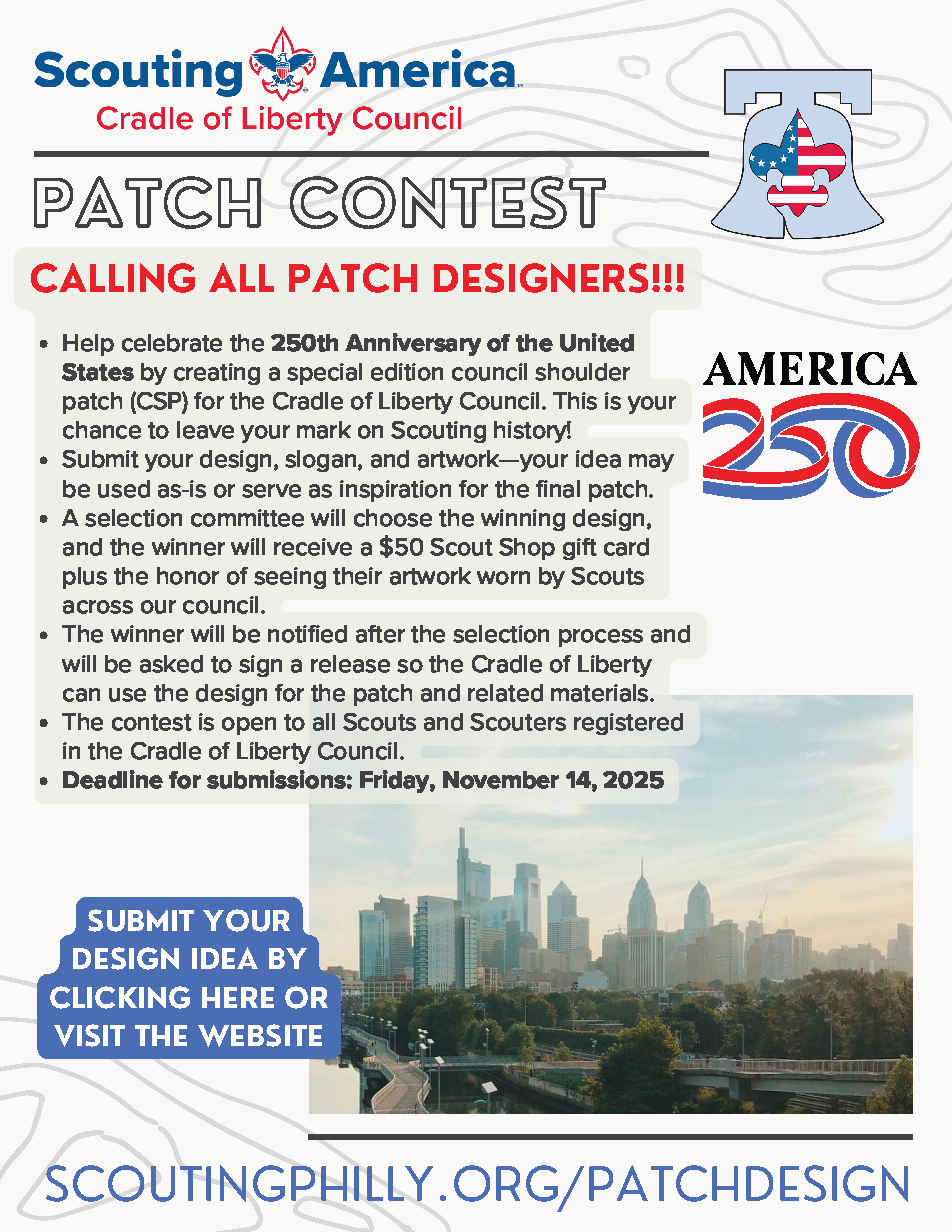 | | | | Patch Design Contest - Celebrating America's 250th | | 2026 Scouts BSA Summer Camp at Resica Falls | |