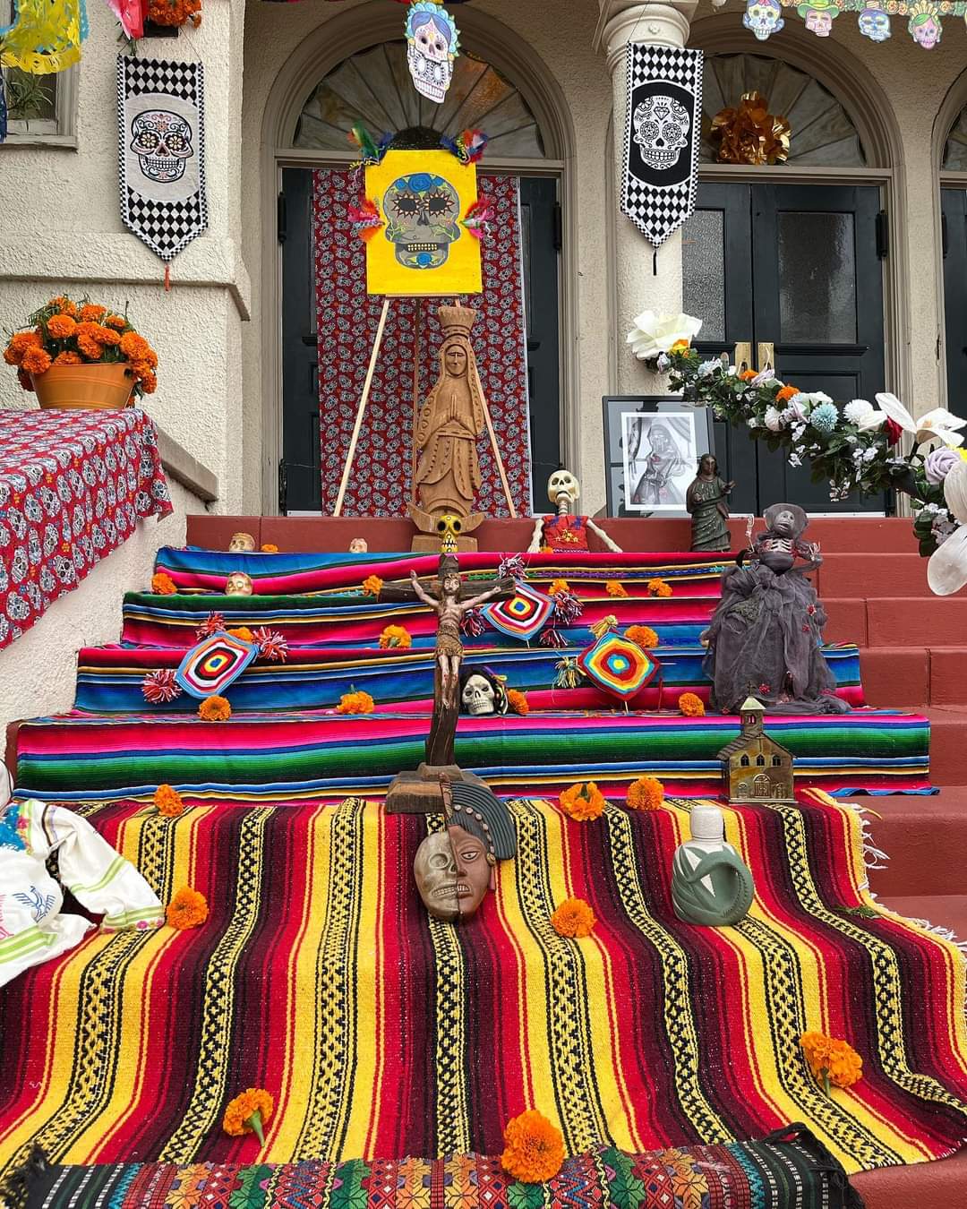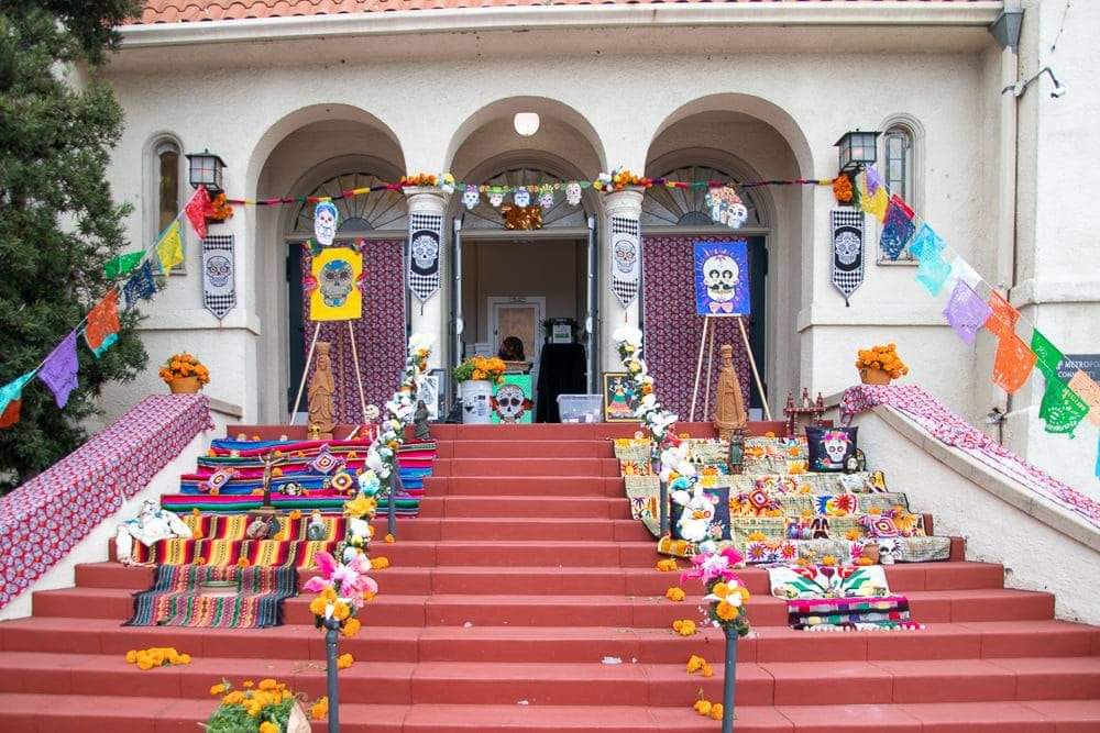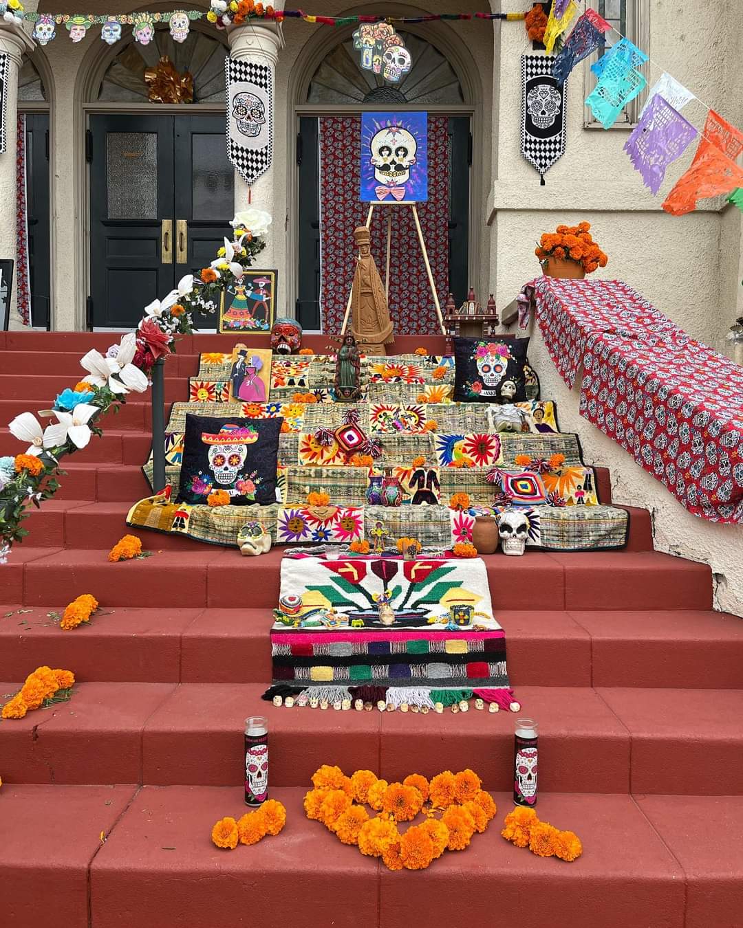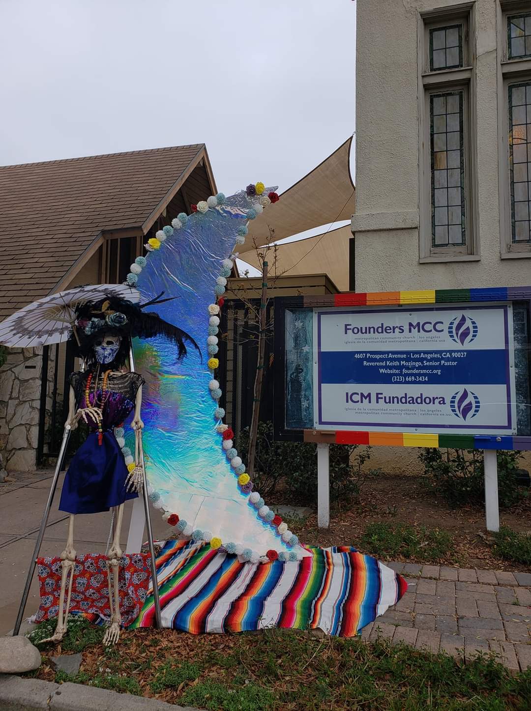 Dia de los Muertos décor outside of Founders MCC | ICM Fundadora in Los Angeles, Califiornia, USA. These images are from the 2021 celebration..