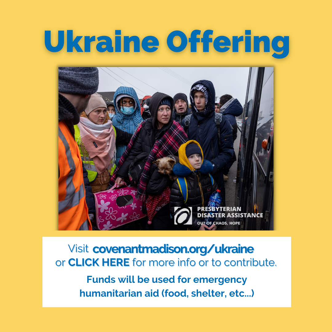 We can help with the miracles through financial gifts. I'm grateful that the Session concurred with the recommendation of the Mission Committee to authorize a special offering through Presbyterian Disaster Assistance, for Ukraine. More info below.