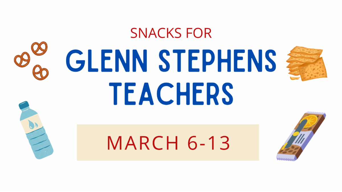 We have a collection going for teachers and staff of Glenn Stephens Elementary School, one of our mission partners. SUNDAY IS THE LAST DAY TO DONATE! Please bring individually wrapped items to the gathering space. Suggested snacks: pretzels, low-fat/air-popped popcorn, whole grain crackers, rice cakes, veggie chips, fruit bars, whole grain cereal bars, sparkling water, diet soda, vitamin water, fruit juice. Thank you!