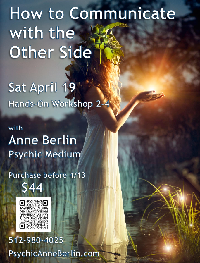 The last part of the workshop consists of Anne's individual translations of your visions/experiences and the very subtle communications each participant receives, but may not recognize during meditation.