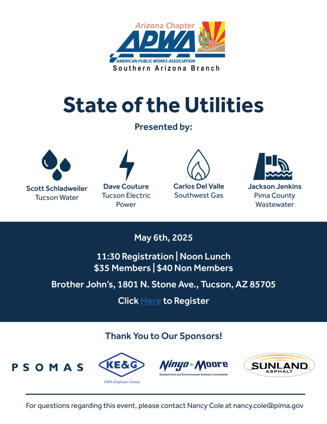 Open to ALL Memberships, this meeting includes updates from ARTBA, ADOSH, City of Tucson, Pima County, Towns of Marana and Oro Valley, local utilities, and many more.