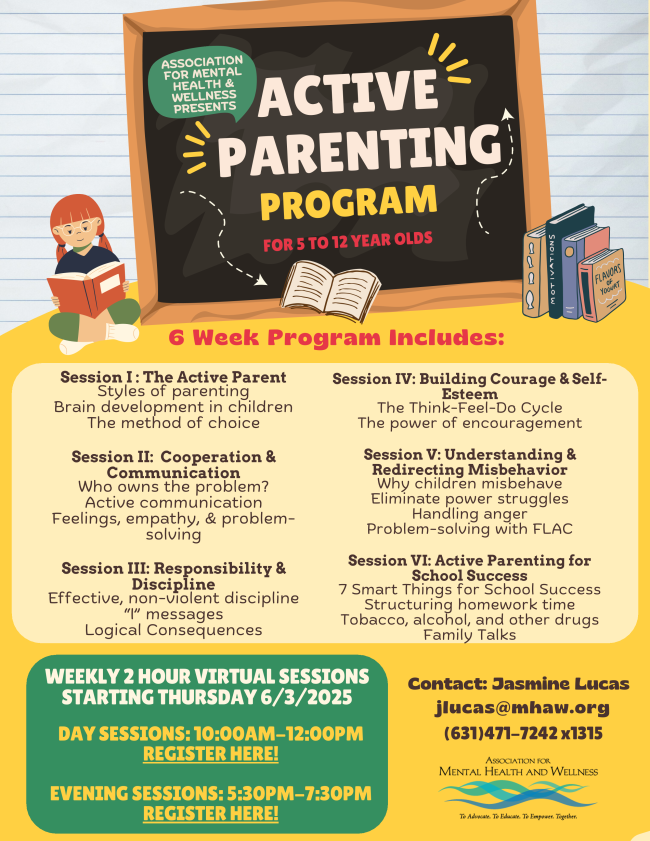 Each month, MHAW hosts virtual Youth Mental Health First Aid training that is open to the public. Space is limited and training is offered at no cost to individuals in Suffolk County. Learn how to recognize the signs and symptoms of a mental health or substance use challenge and connect youth with the appropriate supports, how to better support the youth in your life- whether you are a parent, teacher, family member, coach, youth group leader, community member, etc. and earn a 3-year certification in Youth Mental Health First Aid! Join MHAW on Wednesday May 4th from 9AM-3PM for their next training. Want to set up a private training or learn about our other Mental Health First Aid trainings? Reach out to learn more!
