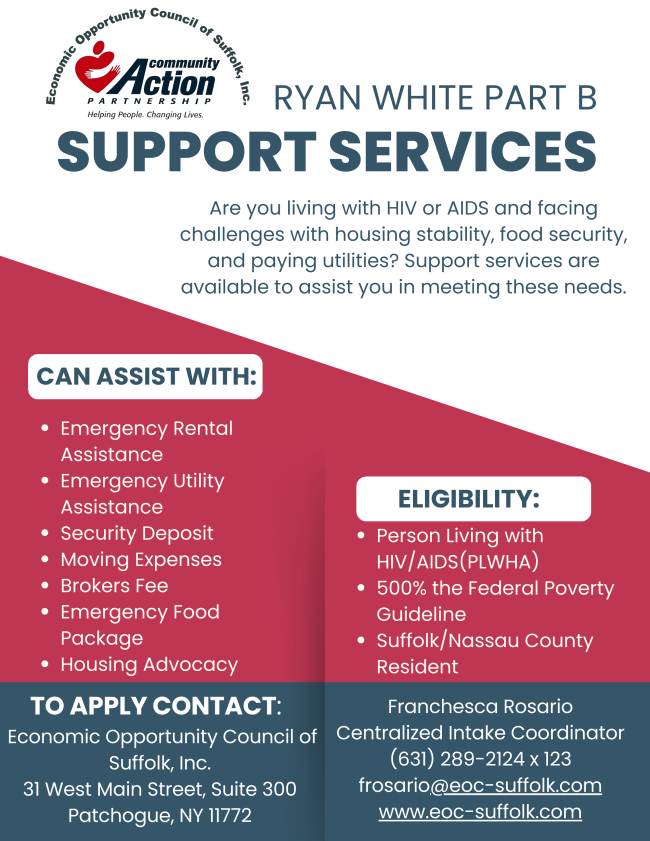 Are you living with HIV or AIDS and facing challenges with housing stability, food security, and paying utilities? EOC of Suffolk Inc. is now offering support services to assist you in meeting these needs.