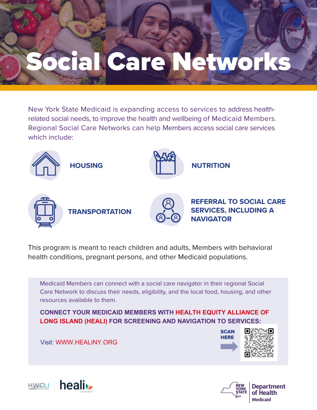 We apologize for the earlier version of our April Resource Digest that was sent in error. Please disregard that message and refer to the corrected version below for the most up-to-date information and resources from the Health & Welfare Council of Long Island. | | HWCLI's Community Services | | Do you serve Medicaid clients on Long Island? The HEALI Social Care Network is here for you! We can help connect them to free or low-cost services that support their health and wellbeing. Have your Medicaid clients reach out to HEALI to get screened and see what services they may qualify for. It’s quick, confidential and can make a big difference. Call us at 516-505-4434, email us at healihelp@hwcli.com or complete a self-screen at www.healiny.org and one of our Community Health Workers will follow up. | | |