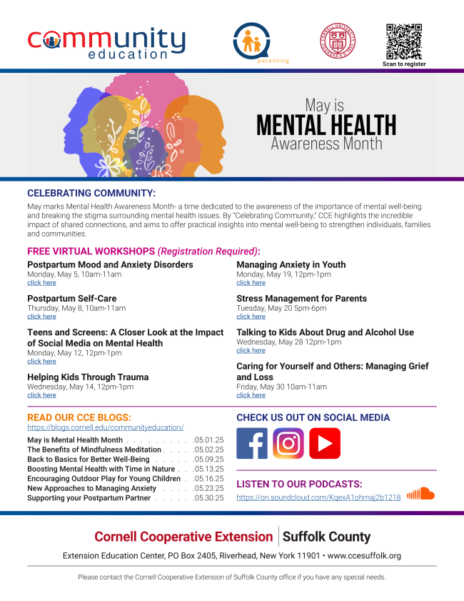 Cornell Cooperative Extension Mental Health Awareness Month Virtual Workshops