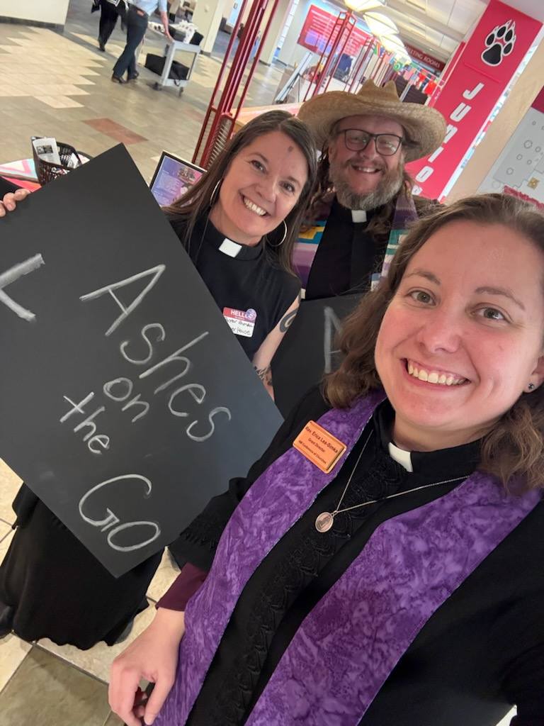 Pastor Rhonda shares that Ashes on the Go was a gift-filled day at UNM, with special thanks to Erica Lea-Simka and Lucas Grubbs for showing up with ecumenical love alongside LuMin (ELCA Lutheran Campus Ministry Network), Open Table NM, the Rocky Mountain Synod (ELCA), and the Southwest Conference UCC.