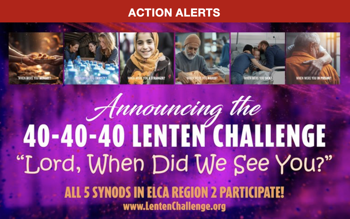 Join the Region 2 ELCA Lenten Challenge (2026)—a friendly, faith-filled effort across the five Region 2 synods (Sierra Pacific, Southwest California, Pacifica, Grand Canyon, and Rocky Mountain) to put Matthew 25 into practice.