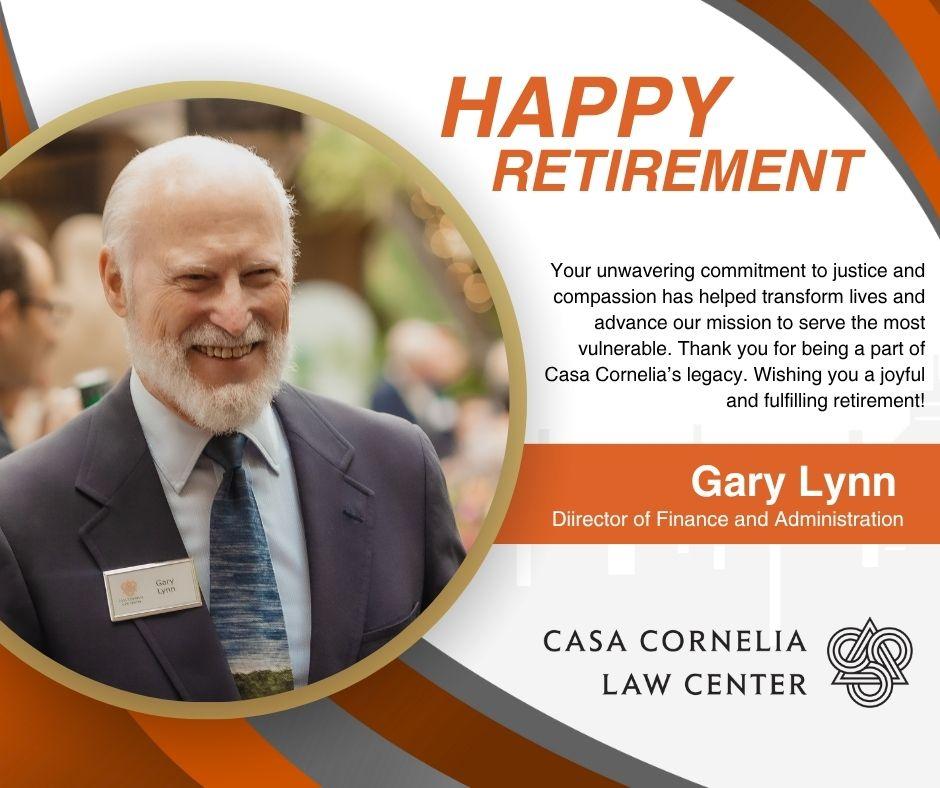 For years, Gary D. Lynn has been the steady hand and compassionate heart behind the scenes at Casa Cornelia Law Center. A Vietnam veteran, servant leader, and financial steward, Gary has guided us through growth, challenges, and transformation—with humility, wisdom, and unwavering purpose. His leadership helped double our budget, modernize our systems, and steer us through unexpected crises. But more than anything, Gary has been a beacon of integrity and kindness whose quiet strength has touched every corner of our mission. As Gary enters a well-earned retirement, we invite you to read the story of a man whose life of service has shaped not only our organization—but everyone fortunate enough to work alongside him.