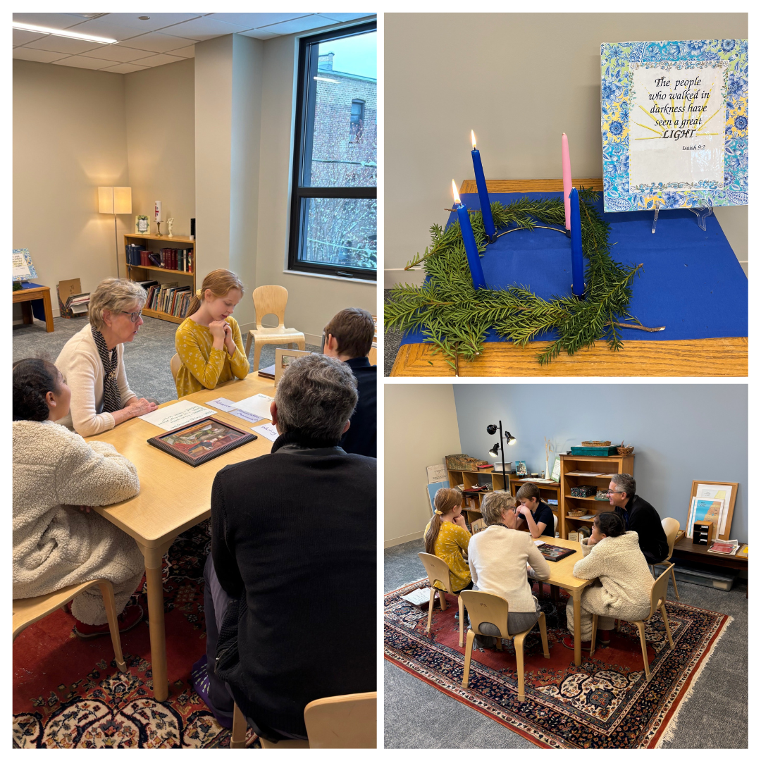 The week before last, the atrium officially moved to its new quarters on the second floor of the new Parish Commons. We began our time together with a happy and gratitude-filled procession from our temporary quarters in the rectory to our new space. We appreciate all the help that our wonderful staff gave us during our time cohabiting with them, and helping with our move to the new space. Once we got to the second floor, we had an advent celebration and considered the infancy stories of the annunciation and the visitation. Both were filled with mysteries, and we pondered those mysteries while looking at art and listening to music related to those events. Happy advent!