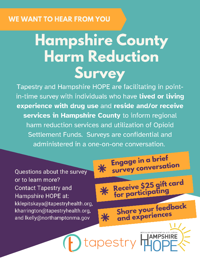 Dec 12: Hampshire HOPE Lunch and Learn SafeSpot Helpline - Overdose Prevention