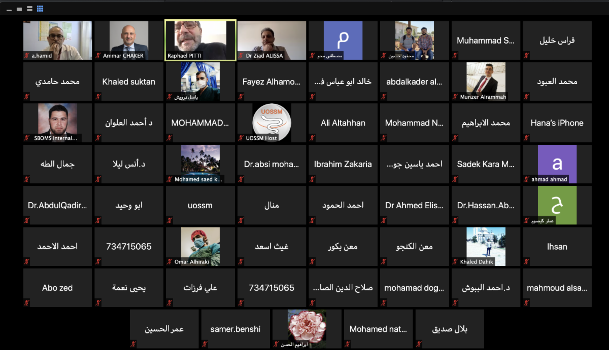 Pitti, médecin-anesthésiste réanimateur, opérant au service de réanimation de l'hôpital de Metz, le Dr Ziad Alissa, médecin-anesthésiste réanimateur, opérant au service de réanimation de l'hôpital de Clermont de l'Oise et Beauvais et le Pr Abdulmonim Hamid, pneumologue, référent scientifique à l’hôpital Foch, ont réalisé une première formation à 70 soignants du nord-ouest de la Syrie, sur le sujet du COVID-19 :