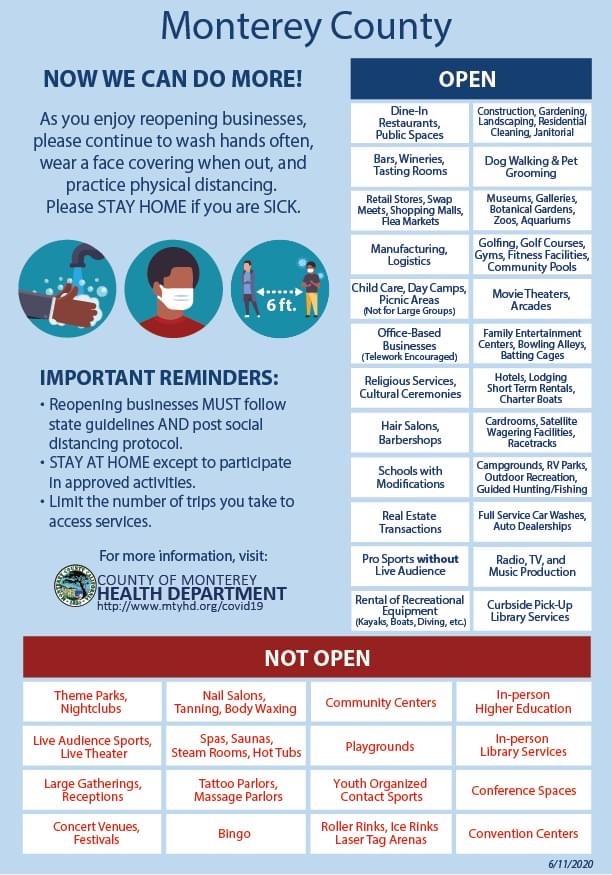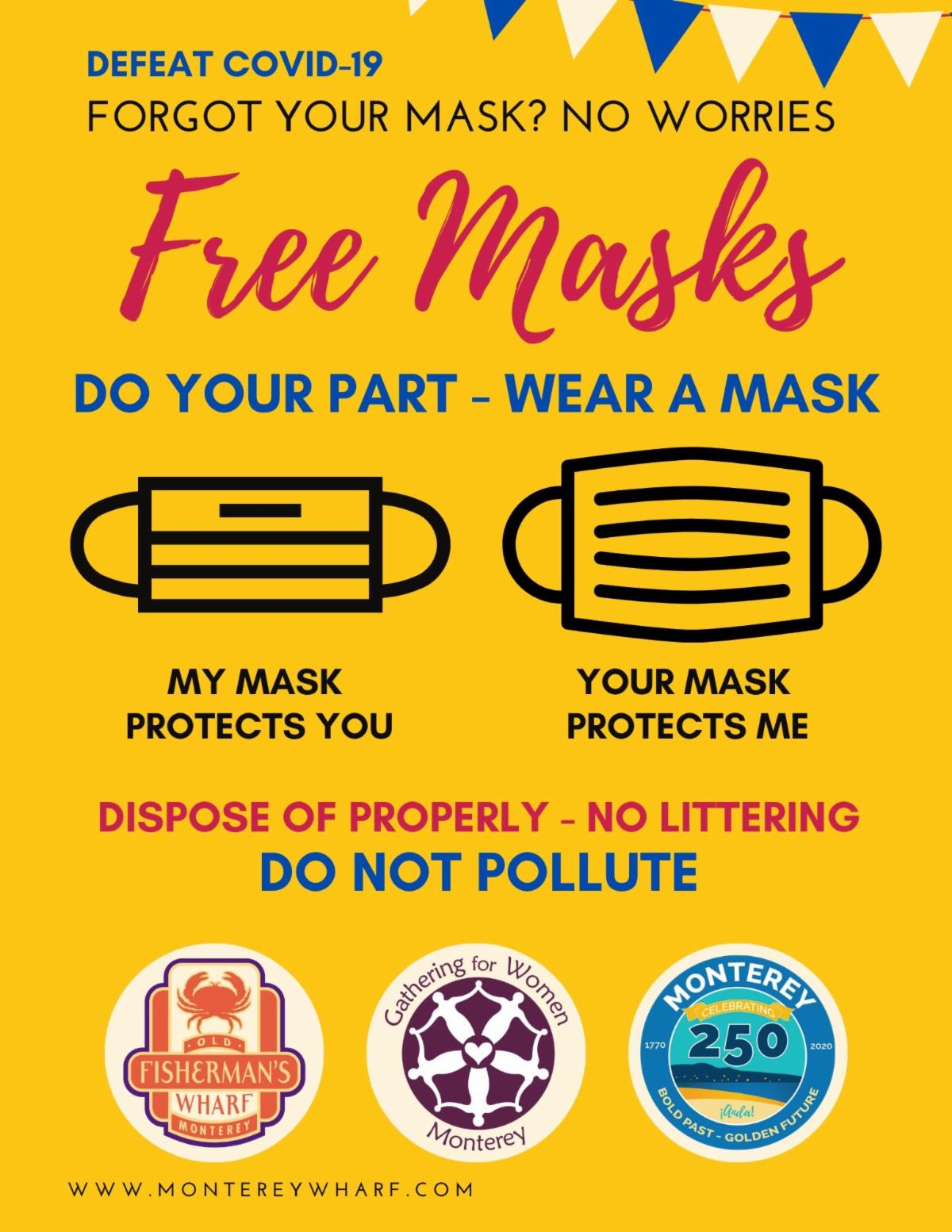 Customers in Monterey County are required to wear a face covering while waiting in line and entering businesses - and please dispose of masks properly - don't pollute our beautiful Monterey Bay National Marine Sanctuary.