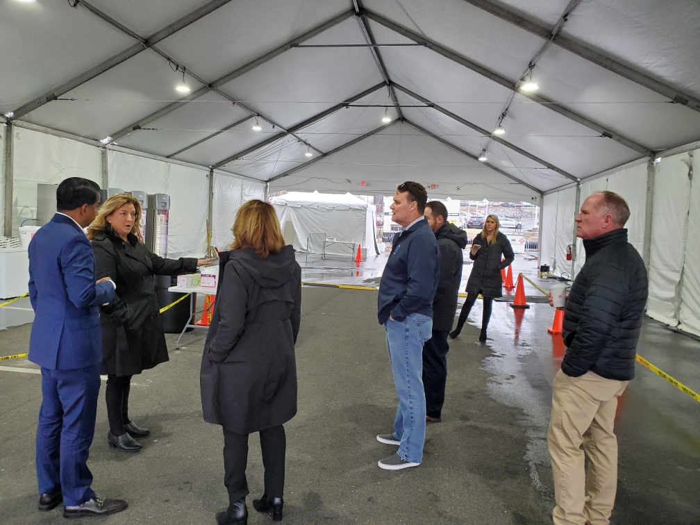 I visited the CVS testing center on Friday, March 20th with Lieutenant Governor Karyn Polito and Senator Mike Moore for a briefing and walk-through. We met with Emmanuel Kolady, the SVP/Head of CVS Health Stores Eastern US, Alisa Ulrey, the District Vice President of Stores, and the CVS employees staffing the test site, as well as the US Public Health Services folks deployed by the federal government with only a few hours of notice to set this test site up, some from as far away as Kansas.