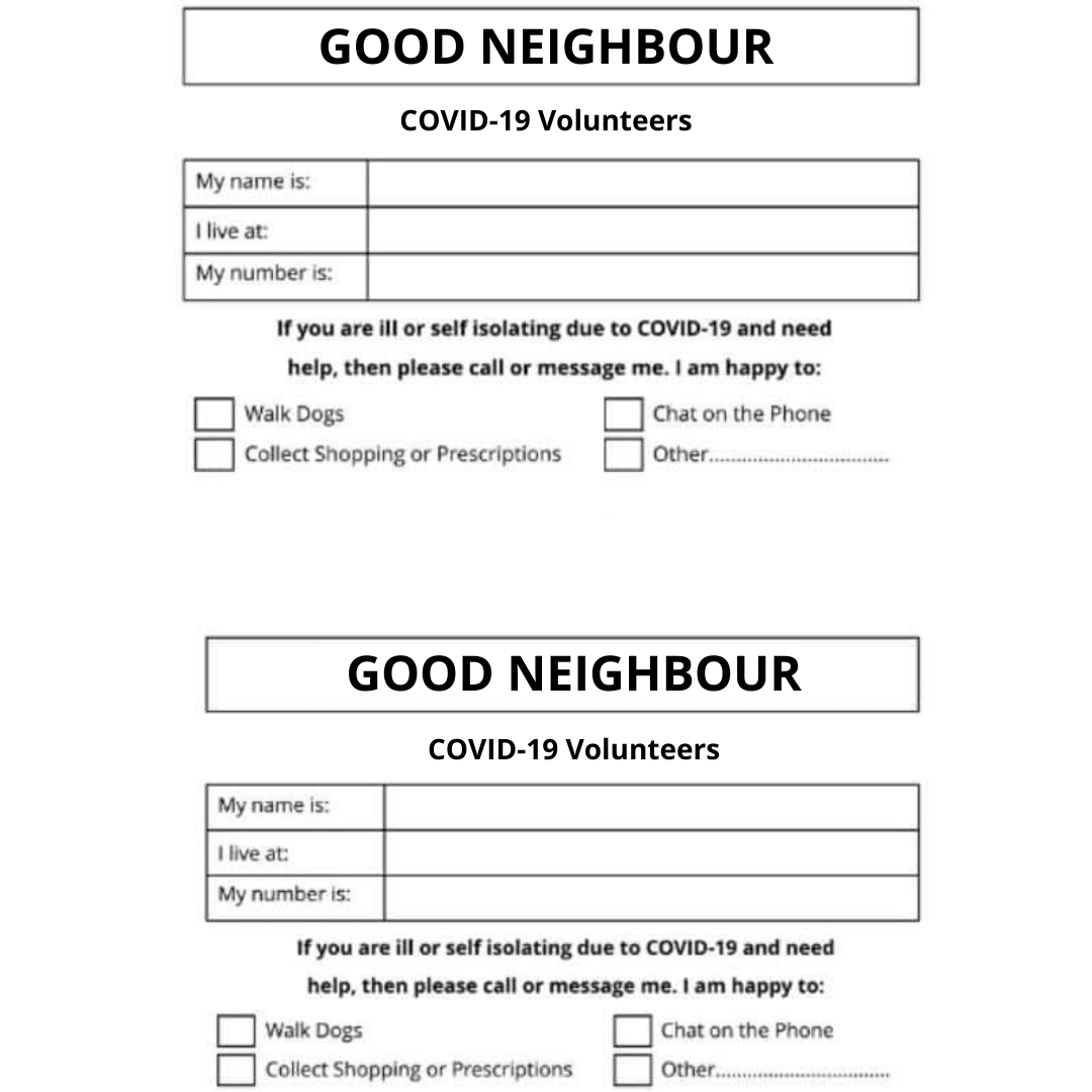 as we try to maintain normality through the Coronavirus pandemic. As good neighbours, and good people, it’s only right that we reach out to the elderly couple down the road, or the NHS worker next door whose run off their feet. We can all make a difference by lending a hand, no matter how small.