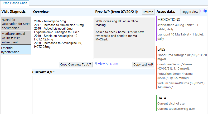 2) Date of the Previous A/P note now shows on the label, so you know when this text is from.