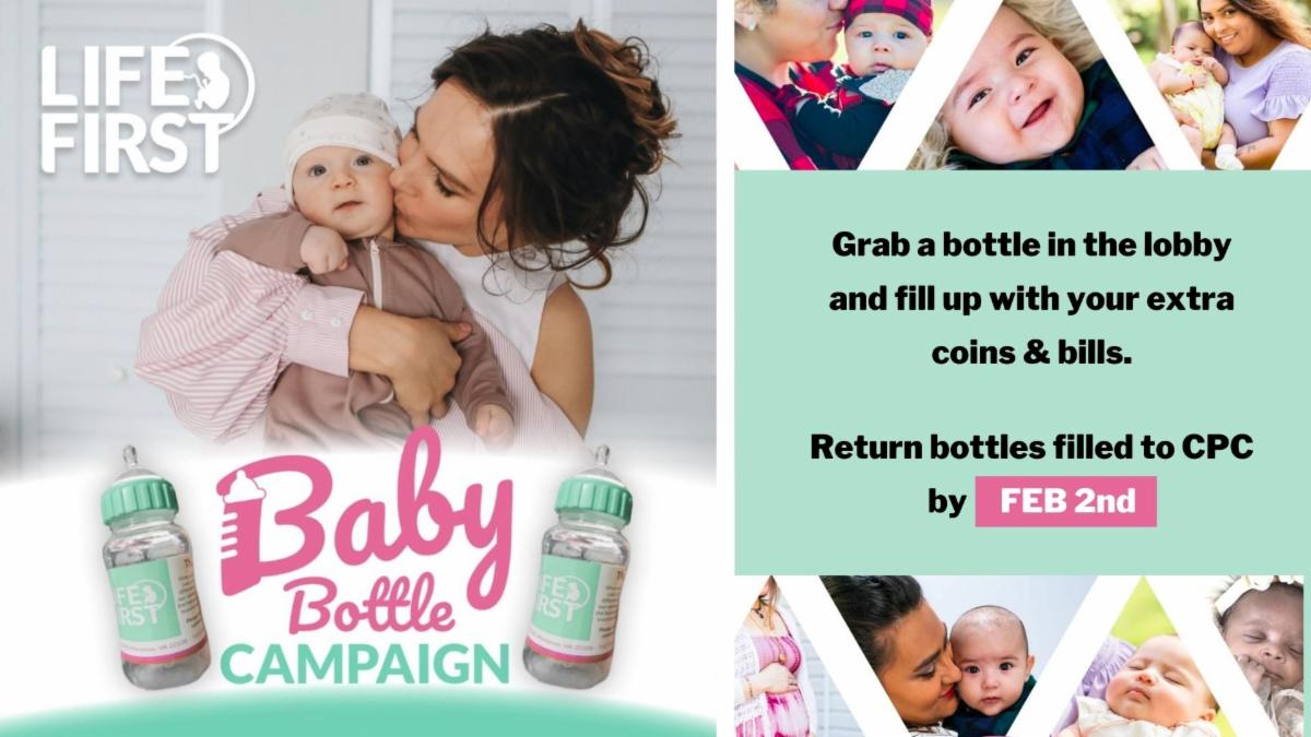 Help Make a Difference – One Bottle at a Time! The Baby Bottle Campaign is in full swing, and there's still time to join this meaningful effort! Pick up a baby bottle in the CPC lobby, fill it with your spare change, and return it by February 2nd.