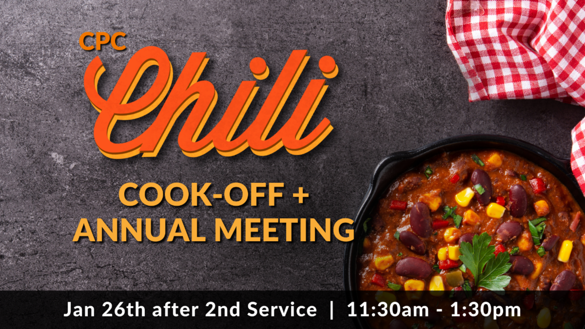 Annual Chili Cook-Off: Get ready for some spicy fun and hearty fellowship—it’s time for our amazing Chili Cook-Off! Mark your calendars and bring your appetite on Sunday, January 26th, 11:30am - 12:30pm.