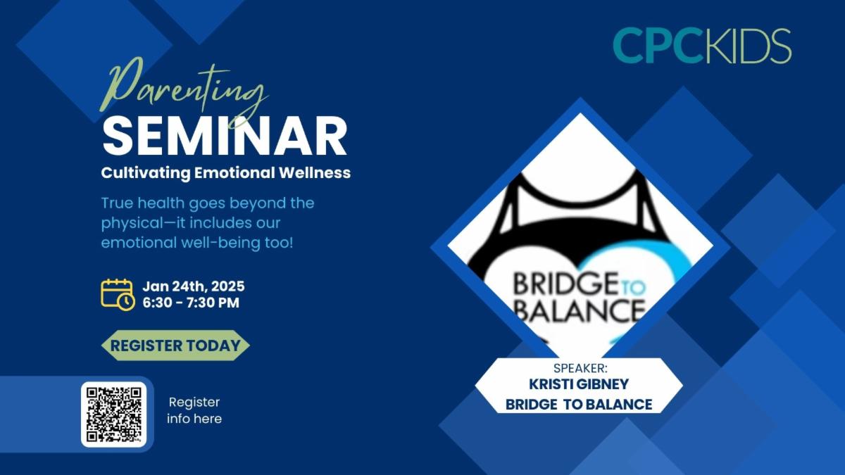 Parents Seminar: Join us, January 24th 6:30-7:30pm, for our Parent's Seminar "Cultivating Emotional Wellness." Emotional wellness doesn’t just happen; it requires intentionality and creativity. This faith-centered session will help you build deeper connections as a family while fostering emotional resilience. Licensed Professional Counselor, Kristi Gibney, from Bridge To Balance, will guide you in exploring practical ways to nurture emotional health within your family. Through establishing meaningful rhythms and incorporating proven strategies, you’ll learn how to support both your child’s and your own emotional well-being. Childcare provided. Questions: Contact Jill | |