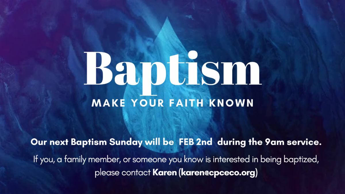 Join us for this special celebration of commitment and renewal. Our next Baptism Sunday is February 2nd! Whether you’re new to the journey or have been thinking about it for a while, this is your moment! Let’s make it an unforgettable day of joy, faith, and connection. If you're interested or have questions about the process, we’d love to guide you! Don’t miss this opportunity to declare your faith and connect with our church community! Email Karen or speak with Pastor’s Paul or Aaron to talk about the next steps. | |