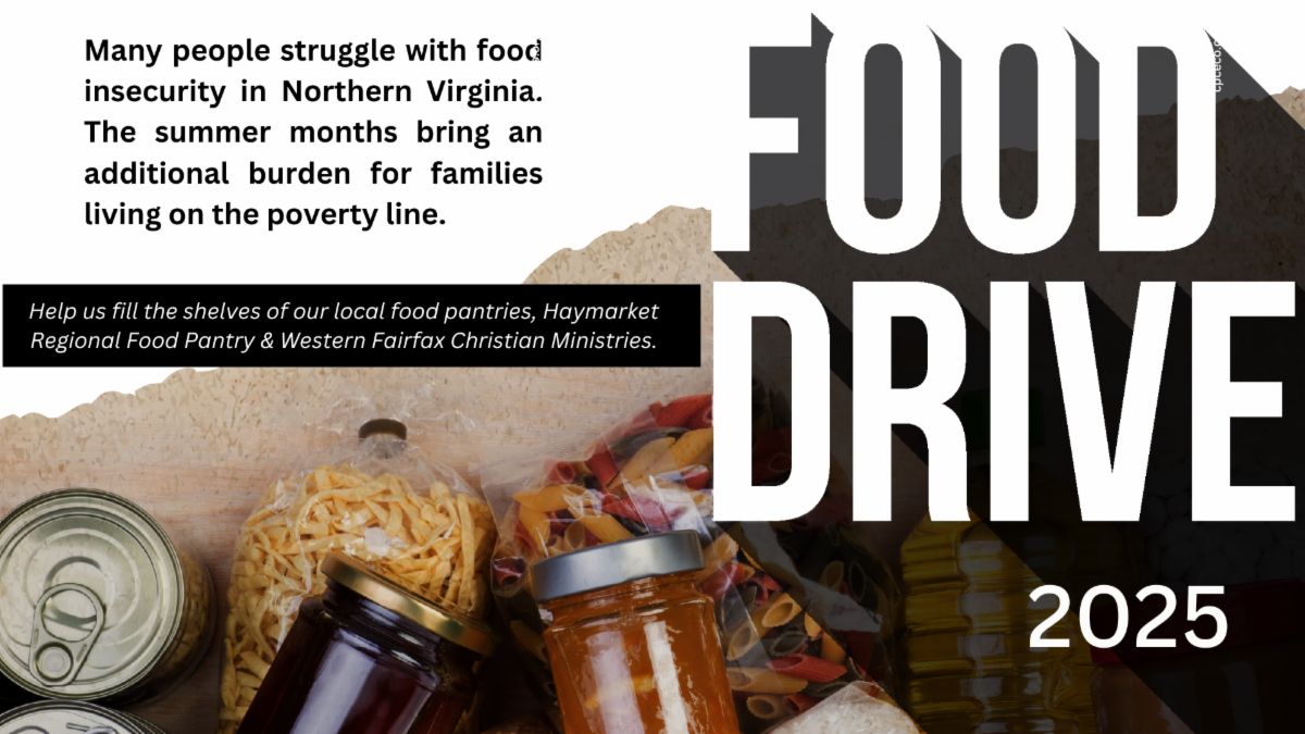 | | May Food Drive: CPC’s annual May Food Drive has begun! Throughout the month of May we are collecting items needed for Haymarket Regional Food Pantry and for Western Fairfax Christian Ministries. Help us stock the shelves of our local food pantries. Most-needed lists and food drive flyers are available online and for pick up in the church lobby. Bring donations anytime! | | |