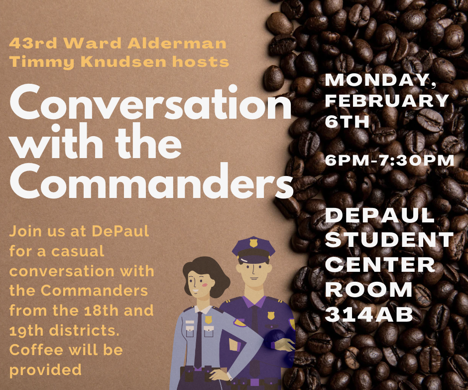 We work closely with the 43rd Ward’s local CAPS districts, which include the 18th (Near North) and 19th (Town Hall) Police Districts.