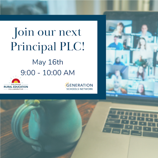 Generation Schools Network and the Colorado Rural Education Collaborative have come together to provide a 60-minute, monthly Principal PLC to learn from one another and connect principals across the state. Join dozens of leaders each month to discuss topics that align with the school calendar as well as have opportunities to consider ideas to advance your efforts around Family Engagement Strategies, College and Career Readiness, STEM, and more!