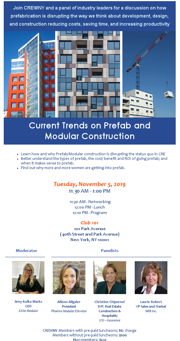 - November 13: Discover CREW | Hosted by Michele Boddewyn, President, Boddewyn Gaynor Architects, D.P.C. | 120 Broadway, #3654 | New York, NY 10271