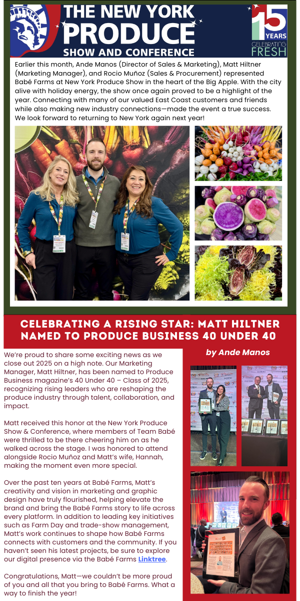 Contact Babé Farms Sales: 800.648.6772 | sales@babefarms.com