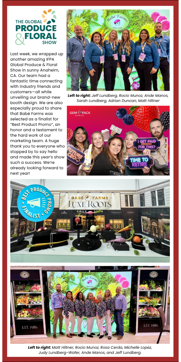 Contact Babé Farms Sales: 800.648.6772 | sales@babefarms.com