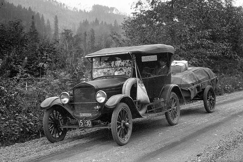 Packing everyone into a Ford Model T Touring Car named Hubbub with attached trailer, the Melvilles left their Worcester home Worcester in January, with the objective of traveling the entire periphery of the United States and, as Mrs. Melville noted in one of her many journals, “…finding out-of-the-way places and experiencing the natural wonders the country had to offer.” The issues these travelers encountered stand in sharp contrast to what we find when we set out on a road trip today. Many roads were unpaved and unnamed, often little more than trails that were muddy in the rain and dusty the rest of the time. The business of providing travel and roadside amenities from gas to food was in its infancy, often with options few and far between.