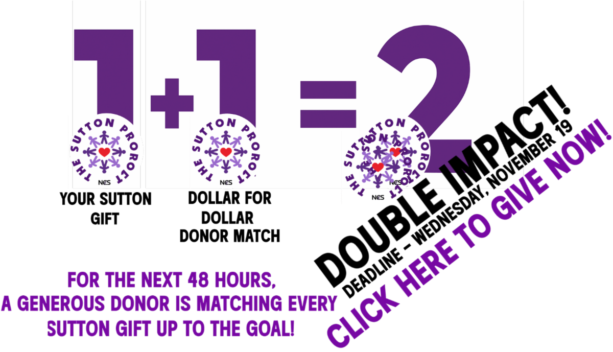 We have a wonderful opportunity in front of us for the next 48 hours. A generous donor has stepped forward and offered The Sutton Project a dollar-for-dollar match until we meet our goal!