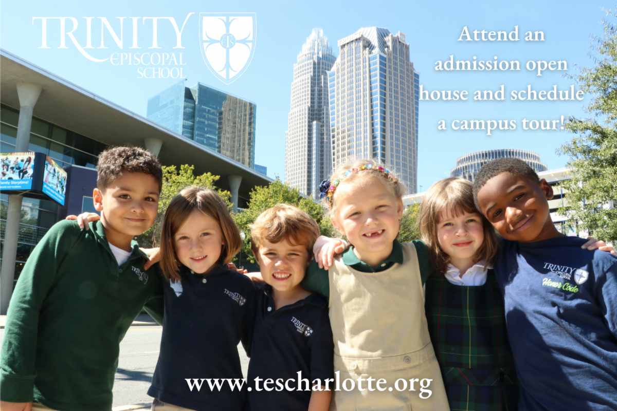 Learn about Trinity Episcopal School's K-8 advantage and core values at an open house for prospective Kindergarten families on Thursday, Oct. 12, 9:30am. Details and registration at www.tescharlotte.org.