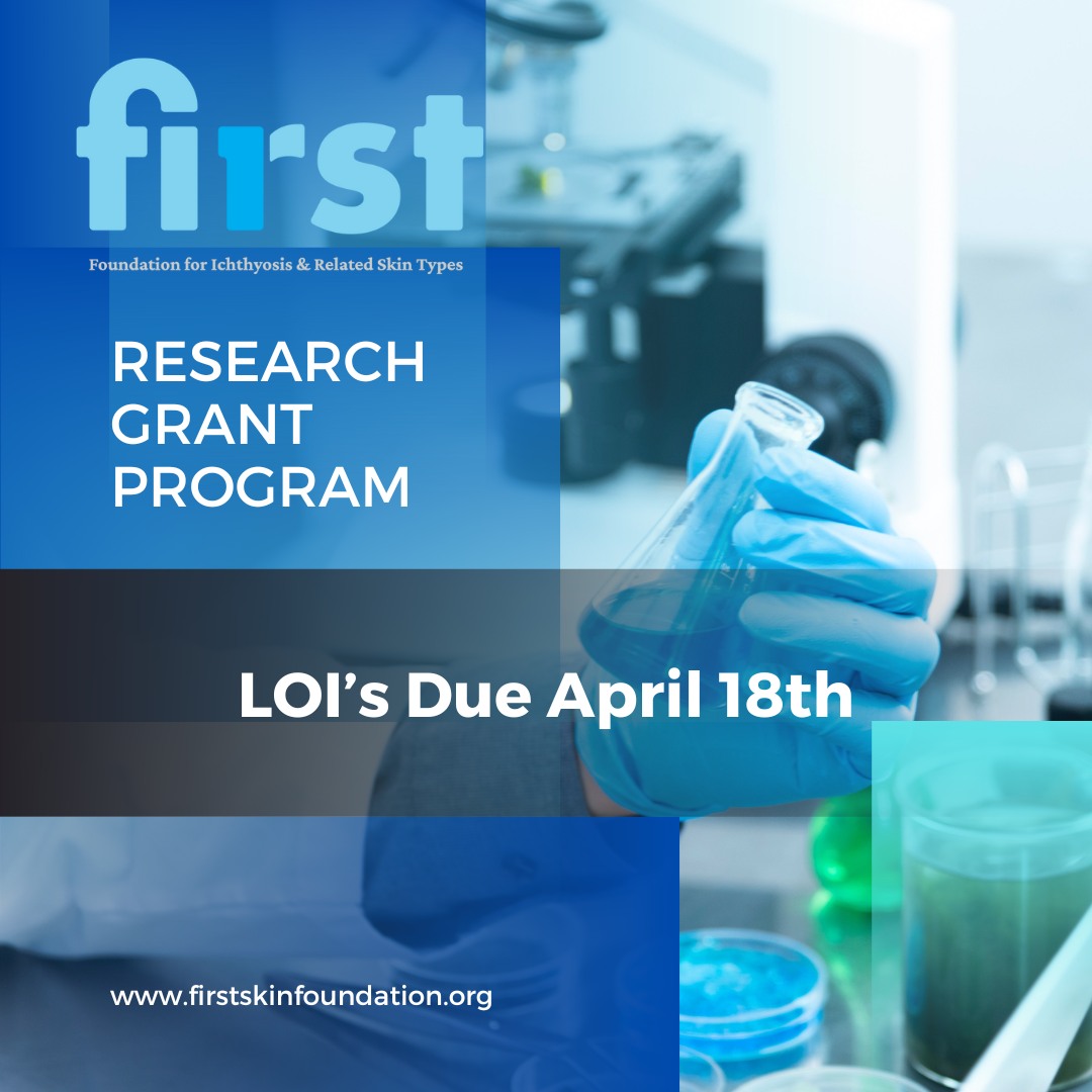 The Foundation for Ichthyosis & Related Skin Types (FIRST) is now accepting letters of intent (LOI) for the 2025 Research Grant Program. Projects with a promising LOI will be asked to complete a full application (5 page narrative). Pilot awards are available for up to $15,000 for one year. Research grants will be awarded for up to $50,000 for year one, with potential for a second year of funding with evidence of adequate progress and available funds. Priority will be given to applications that can be substantially advanced with the funding provided. Different types of ichthyosis research will be considered.