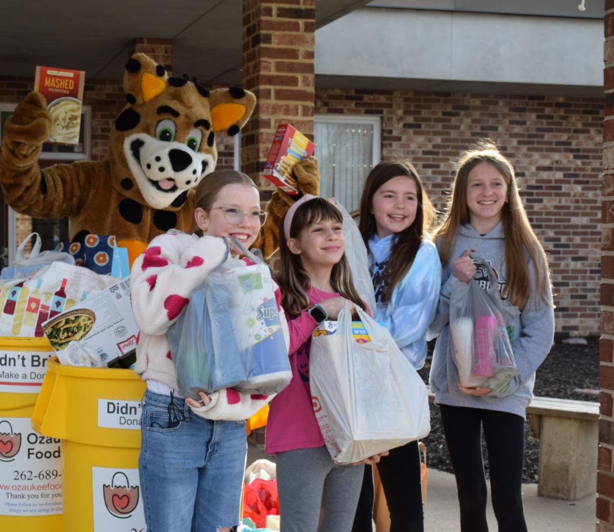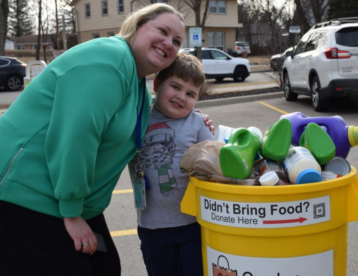 All last week, elementary staff, students, and their families collected items for the Ozaukee Food Alliance as part of the annual "Stuff the Bus" drive. A big thank you goes to the staff, students, families, and PTOs who all came together to support those in need! All week long, we were excited to see which elementary school would win the STB Trophy this year AND which principal of the winning school would get pied in the face in celebration of Pi Day!! All three schools showed up BIG TIME, and we are proud of all our staff's efforts to support our community! Small but mighty Westlawn won with the most pounds per student – so Katie Ramos looks forward to getting PIED this week! This is such a great example of school community spirit of giving. Well done to everyone involved!
