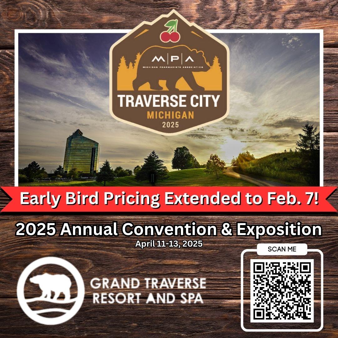 We encourage our members to make the 2025 ACE their "stay-cation" – golf, water activities and wineries are just a few things you can do in beautiful Traverse City. After you register for ACE 2025, be sure to book your room at the Grand Traverse Resort. MPA's room block is already more than half full, so act now! Click the booking link below or call 231-534-6001 to speak with a reservations agent. Attendees will receive the discounted rate if they mention the Michigan Pharmacists Association.