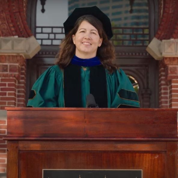 As is the custom at UT for each year's December commencement, the recipient of the Louise Loy Hunter Award for Outstanding Faculty Member presented the keynote address to our graduates. This year's recipient and speaker was our college's Assistant Dean and Associate Professor of Mathematics Leslie Jones. Jones shared her struggles as a graduate trying to find her place in the world and described how if she wrote a book, she would title it It's OK to be Ordinary: Living an Extraordinary Life. Jones encouraged our graduates to make a positive impact in the world through investing time in others, personal growth and practicing small acts of kindness in order to live an extraordinary life.