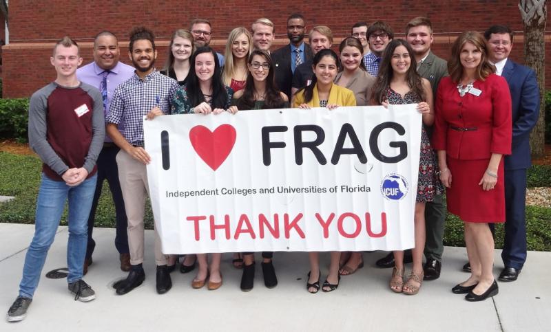 Kevin O'Hare were selected by political science and international affairs faculty to represent UT in the Independent Colleges and Universities of Florida (ICUF) Presidential Fellows program. As Presidential Fellows, Gonzalez and O'Hare conduct campus awareness campaigns for ICUF and the Florida Resident Access Grant (FRAG), a program that provides tuition assistance to Florida undergraduate students attending an eligible private, non-profit Florida college or university, and actively engage with state government legislators. In October, they attended an orientation session at Stetson University, which was led by ICUF staff. In January, O'Hare, along with faculty mentors Associate Professor