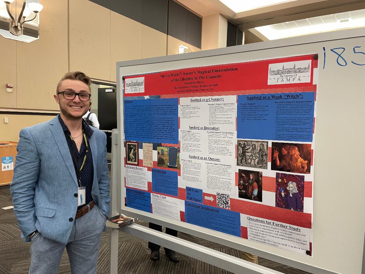 Secondary English Education major, Mark-Elliot Finley attended the 2022 Florida Undergraduate Research Conference (FURC) at the University of Central Florida to present his research titled "He's A Witch!: Foster's Magical Emasculation of the Libertine in The Coquette.