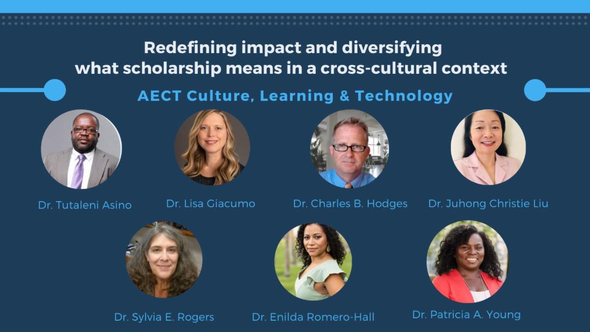 On Thursday, February 3, Dr. Enilda Romero-Hall participated as a panelist on a webinar sponsored by Association for Educational Communications and Technology (AECT) Culture, Learning, and Technology Division titled "Redefining impact and diversifying what scholarship mean in a cross-cultural context" along with colleagues Dr. Tutaleni Asino, Dr. Lisa A. Giacumo, Dr. Charles B. Hodges, Dr. Juhong Christie Liu, Dr. Sylvia E. Rogers, and Dr. Patricia A. Young. The purpose of the webinar was to provide grounding introduction to cross-cultural research development for scholars, researchers and practitioners in instructional design, educational technology and communication.”