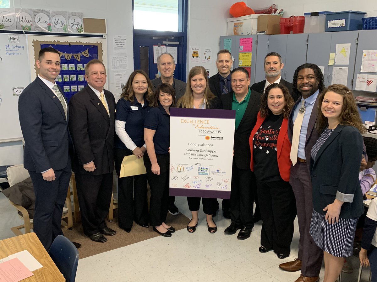 Sommer SanFilippo was named as a finalist for Hillsborough County Public Schools' Teacher of the Year. SanFilippo is a reading resource teacher at Mendenhall Elementary in Tampa. She received a bachelor of science degree in elementary education in 2015 and a master's of education degree in curriculum and instruction in 2016. Congratulations, Sommer!