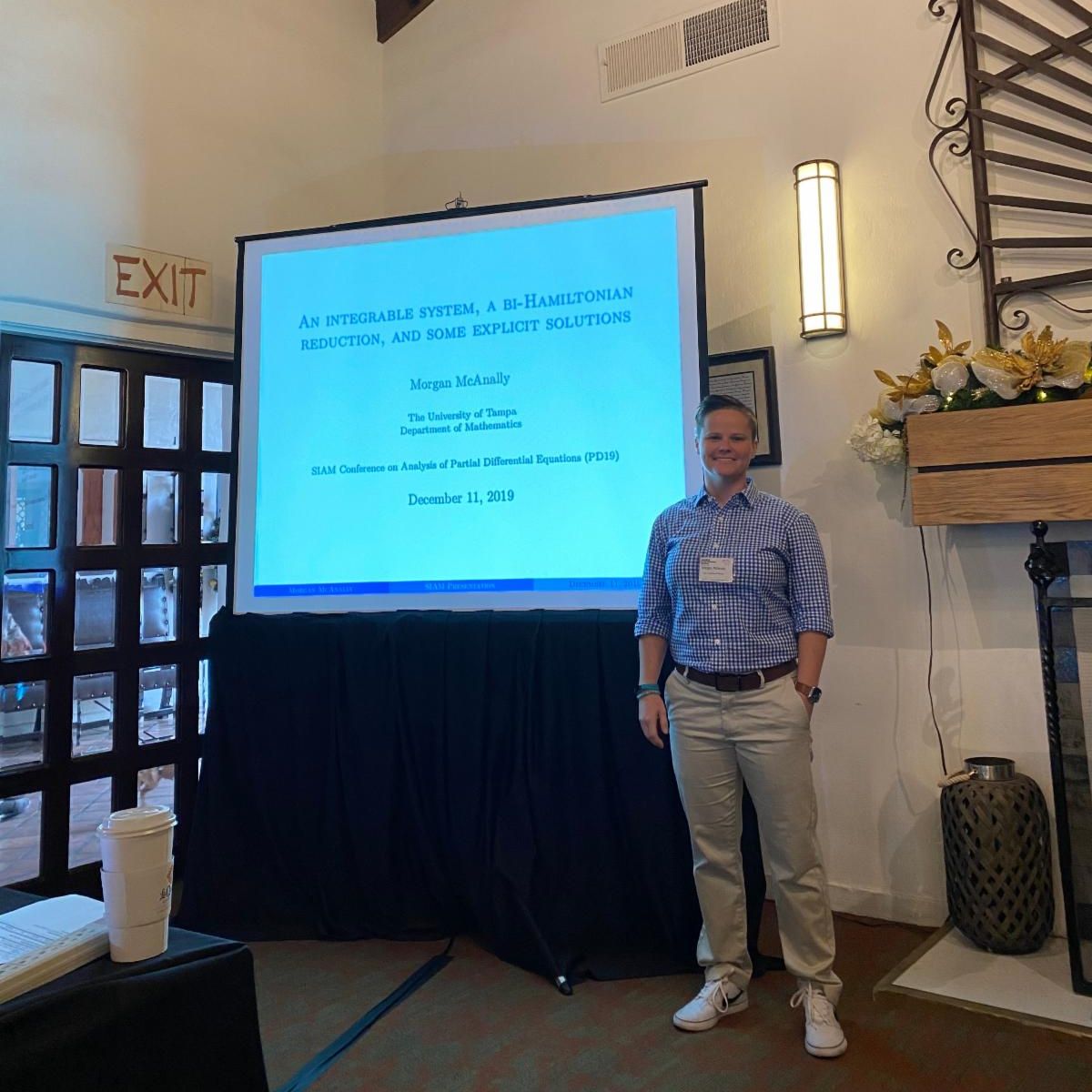 McAnally presented "A Integrable Hierarchy, a Bi-Hamiltonian Reduction, and Some Explicit Solutions" at the Society for Industrial and Applied Mathematics (SIAM) Conference on Analysis of Partial Differential Equations that was held in LaQuinta, CA on December 11 - 14, 2019. McAnally also served as Chair of the session titled "Equations of Mathematical Physics and Other Applications I."