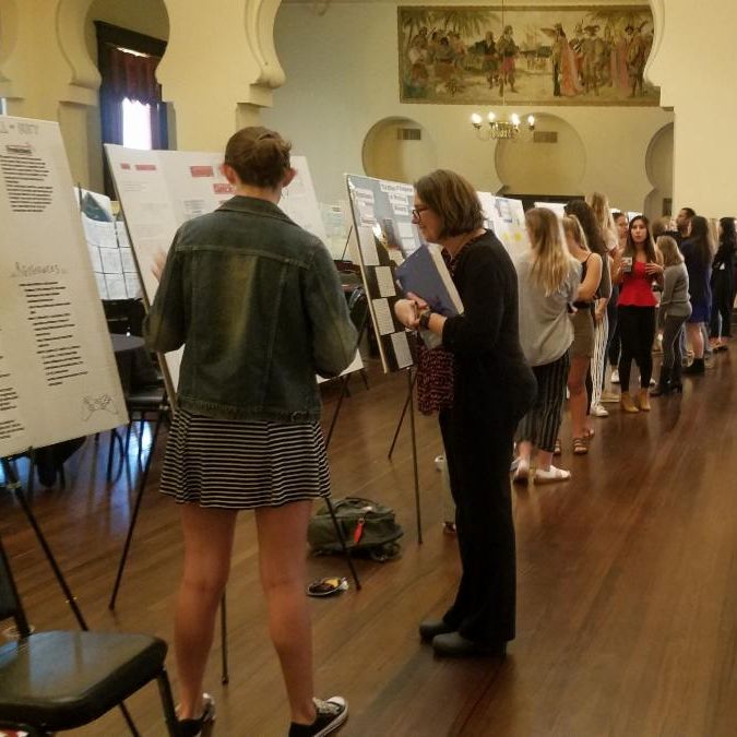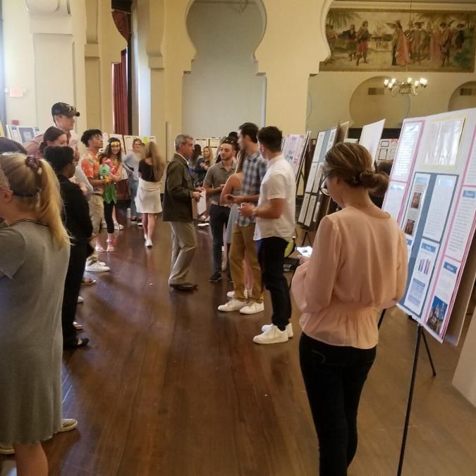 Elizabeth Littell-Lamb. The posters were the products of students’ semester-long research into historical documents written before 1500. Posters were divided into five subject categories and judged by faculty judges including: Assistant Professor of Geography Stephen McFarland, Assistant Professor of History Ed Pompeian , Professor of Instruction I, History Kelly Palmer , Associate Professor of English and Writing Joseph Letter, and Associate Professor of English and Writing Daniel Dooghan. Each judge selected the best researched and most informative poster for a final round of judging. Then, Associate Professor of History Spencer Segalla and Director of the First-Year Experience Edesa Scarborough had the incredible task of selecting the best poster among the five finalists.
