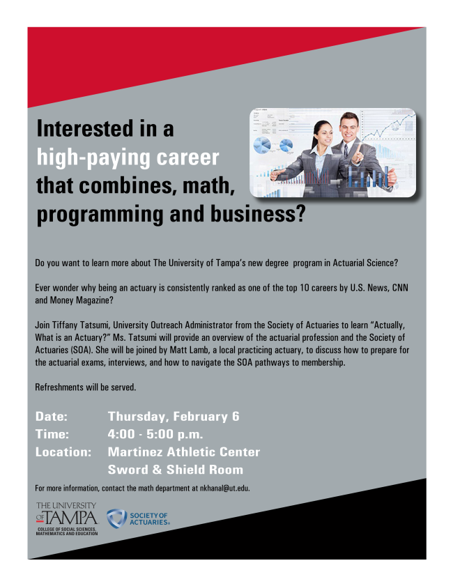 Society of Actuaries and a practicing actuary from the Tampa area will discuss this in-demand and high-paying profession.
