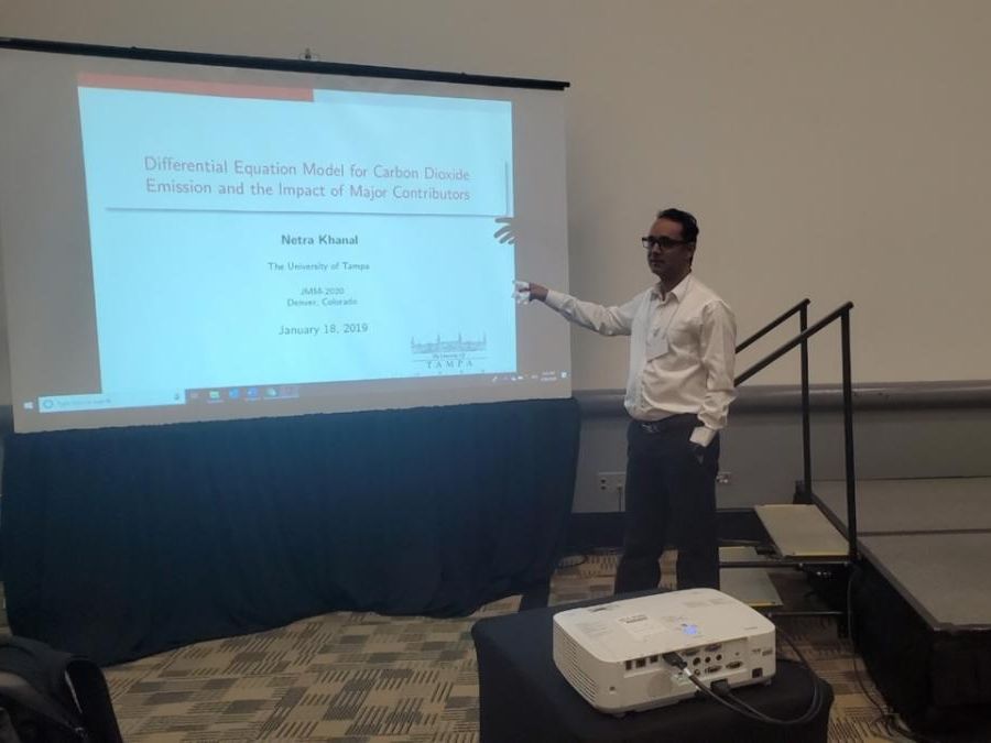 Netra Khanal presented "Differential Equation Model for Carbon Dioxide Emission and the Impact of Major Contributors." Khanal discussed the development of a differential equation to model carbon dioxide emission while considering the impact of solid, liquid, and gaseous fuels as an input function. The proposed model is expected to be useful to understand the dynamics of major attributing variables and their impacts on the rate of change of carbon dioxide emission.