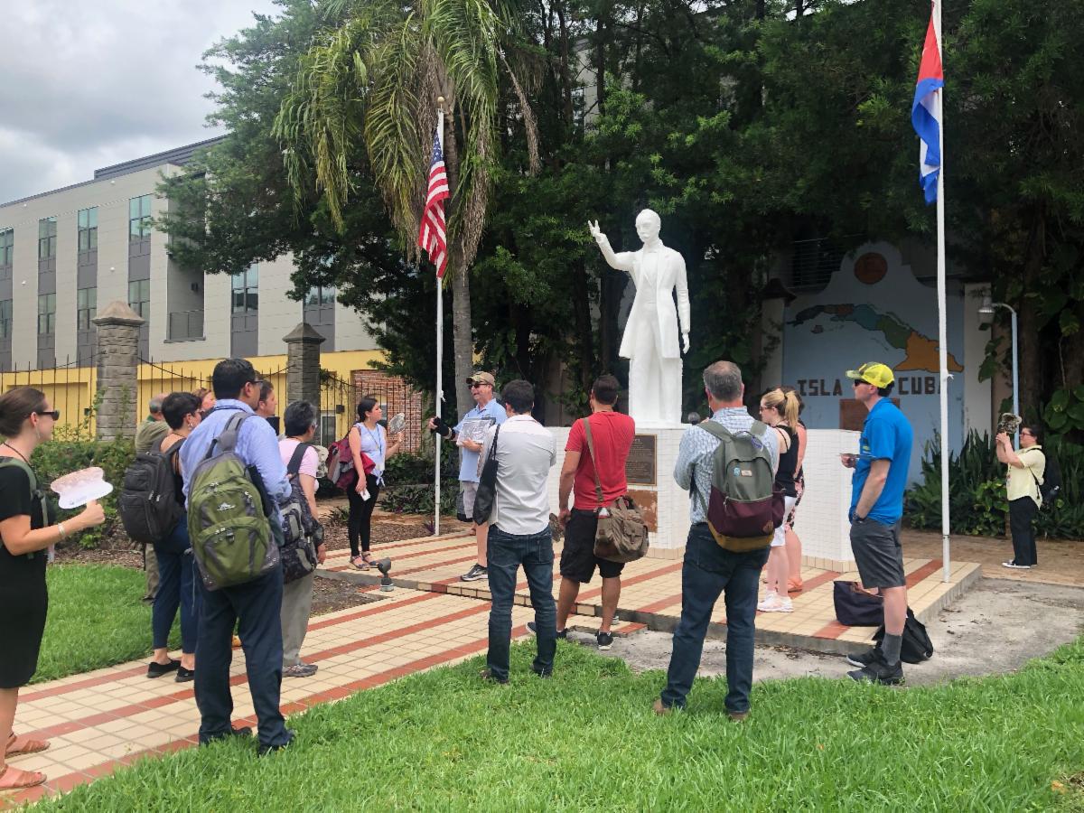 Participants on guided tour of José Martí Park in Ybor City.