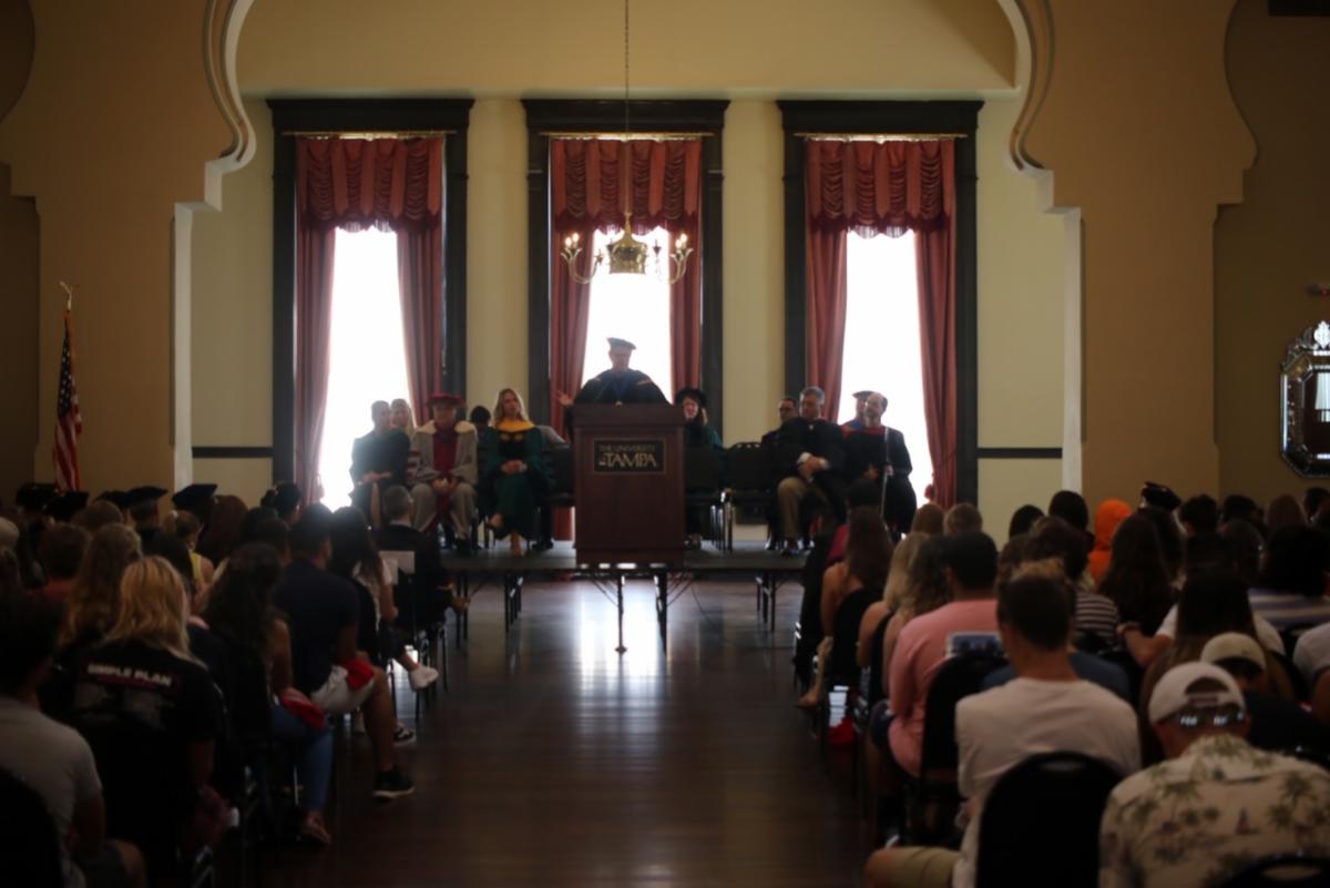 Dean Jack Geller. Alumnus Thomas Vacca, (psychology, 2014) expressed his appreciation of faculty members who inspired and assisted him in his journey as a student at UT.