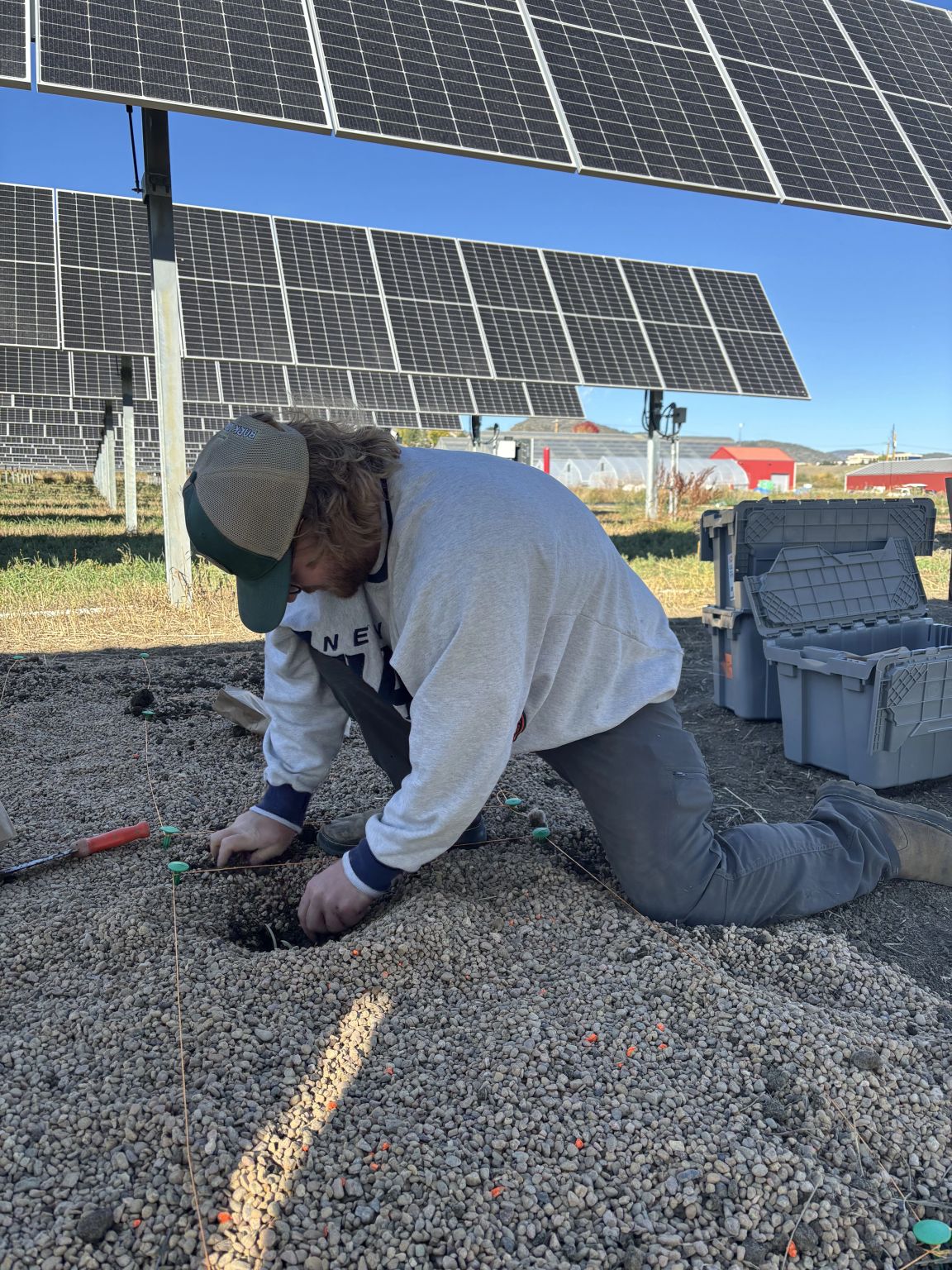 Reece finished planting his multi-site research project on Saffron grown in varying agrivoltaics systems and under differing irrigation Regimes. A total of 2,520 plants have been planted at CSU Spur and Denver Botanic Gardens Chatfield Farm underneath their new solar array