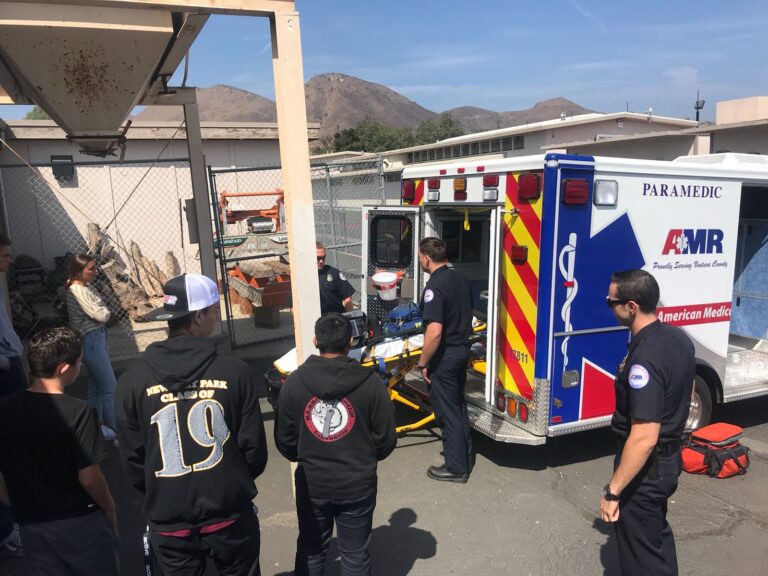 The Newbury Park High School Public Safety Pathway offers a comprehensive two-course program including a course that has recently been approved by the Ventura County EMS agency to offer a path toward state certification as an EMT. The program is taught by Casey Graham and is divided into two main courses: Emergency Medical First Responder and Emergency Medical Technician.