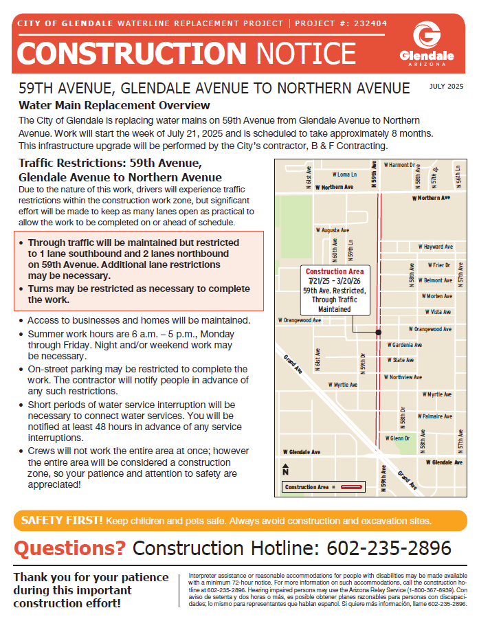 If you have any questions or would like further information, please call the 24/7 Project Hotline at 602-532-6250.